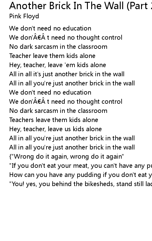 | 歌曲 | Another Brick In The Wall (Part 2) |