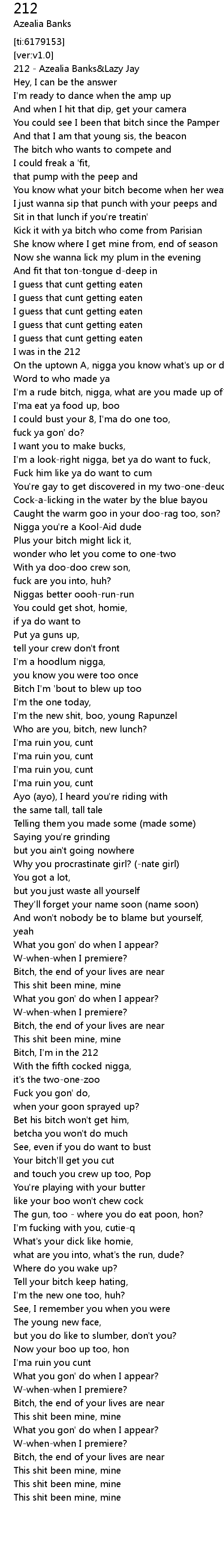 [03:01.34] I'ma ruin you cunt