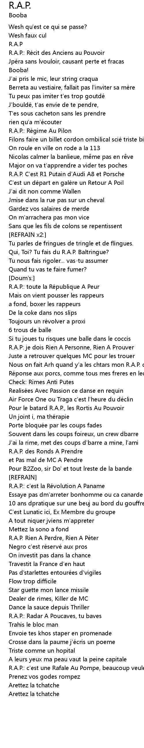 | Qui, Toi? Tu fais du R. A. P. Baltringue? | |
