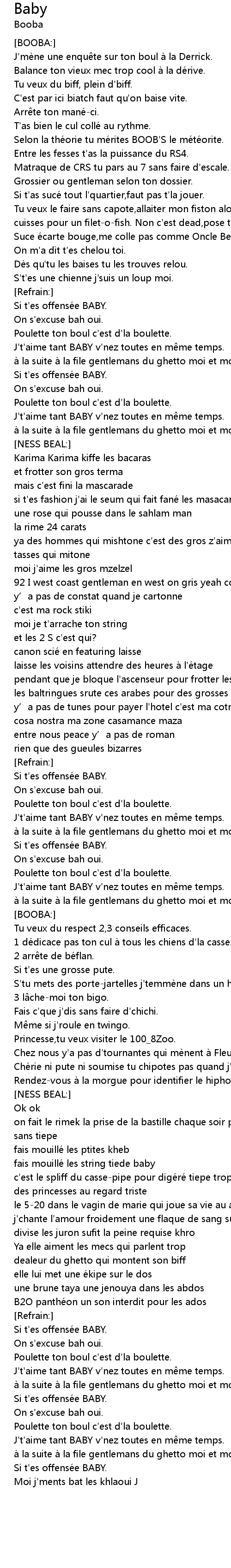 | Che rie ni pute ni soumise tu chipotes pas quand j' te tripote. | |