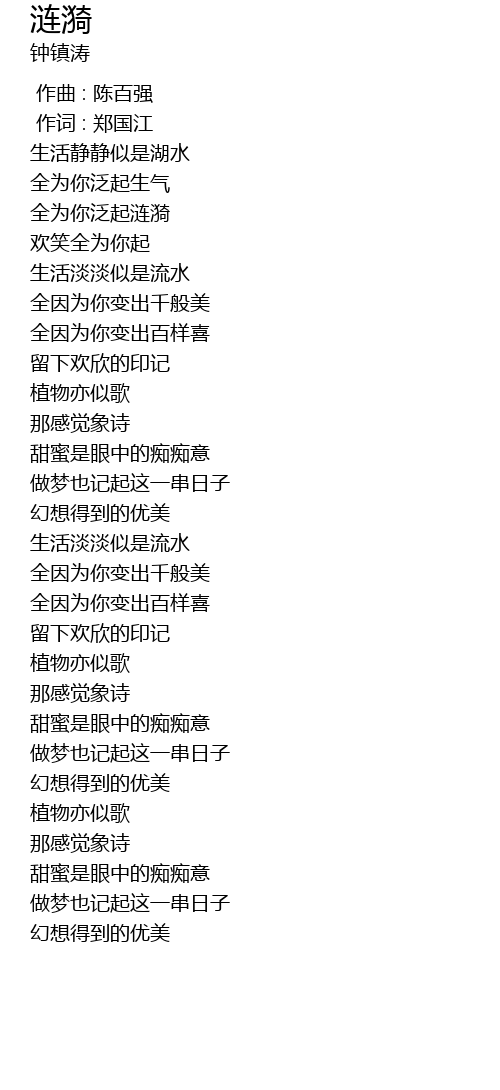 | [00:33.07] | 全为你泛起涟漪 |