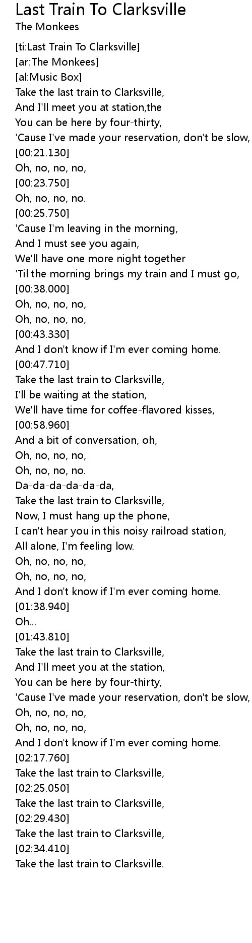 [ti:Last Train To Clarksville] |