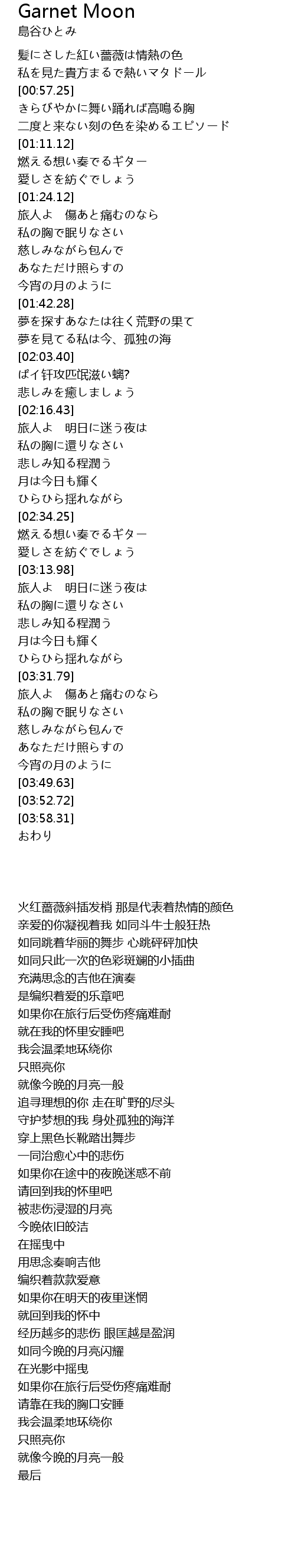 | [00:43.77] | 髪にさした紅い薔薇は情熱の色 |