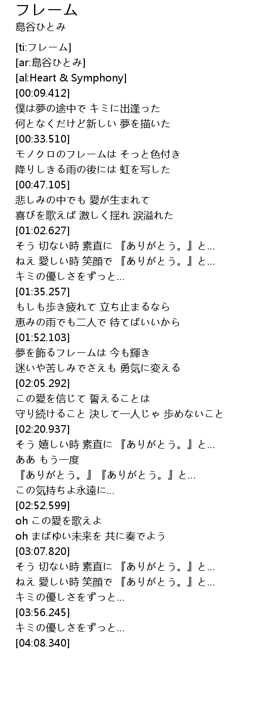 | [01:52.572] | 夢を飾るフレームは 今も輝き |