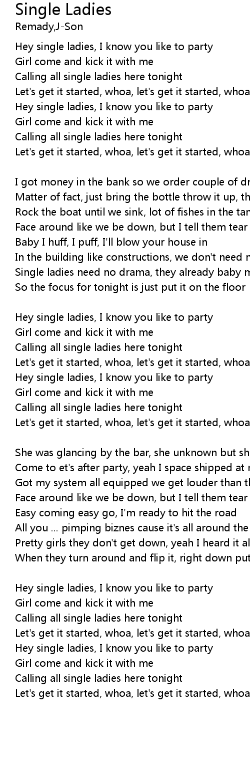 | Hey single ladies, I know you like to party | |