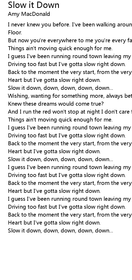Driving too fast but I've gotta slow right down. |