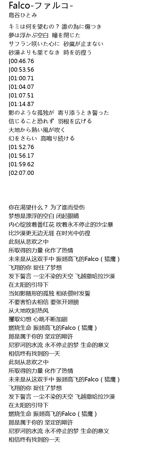 | [02:58.84][01:52.76] | mìng rán fēi lì Falco |