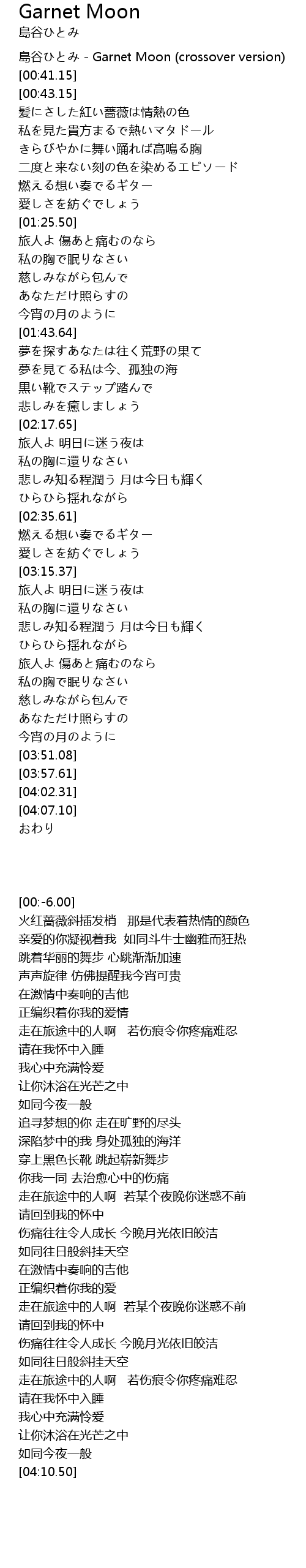 | [00:-6.00] | 島谷ひとみ - Garnet Moon (crossover version) |