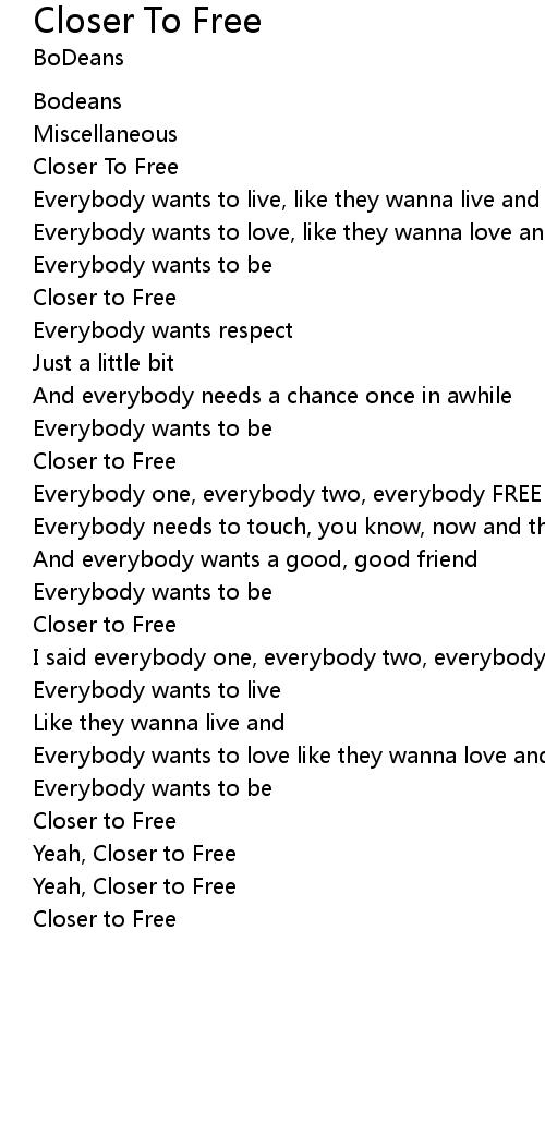 Closer To Free |
