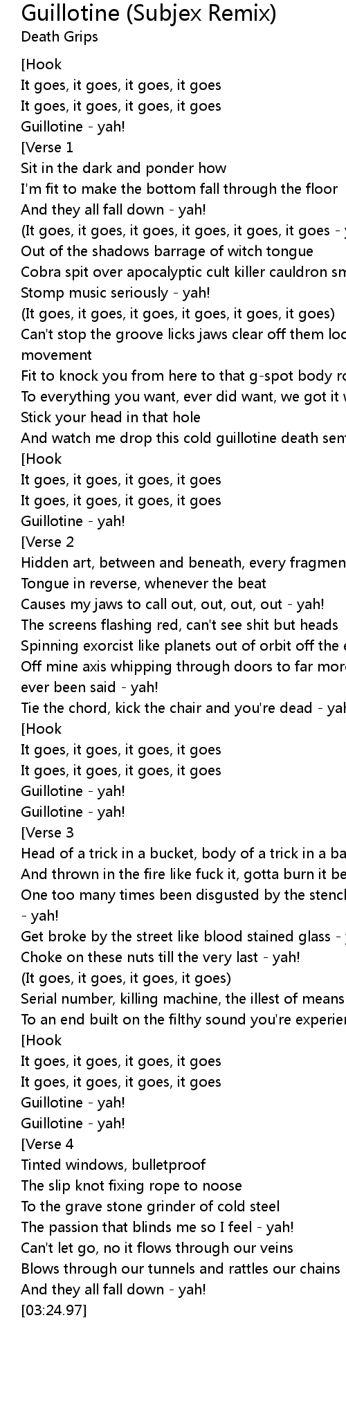 | [00:45.34] | Guillotine - yah! |