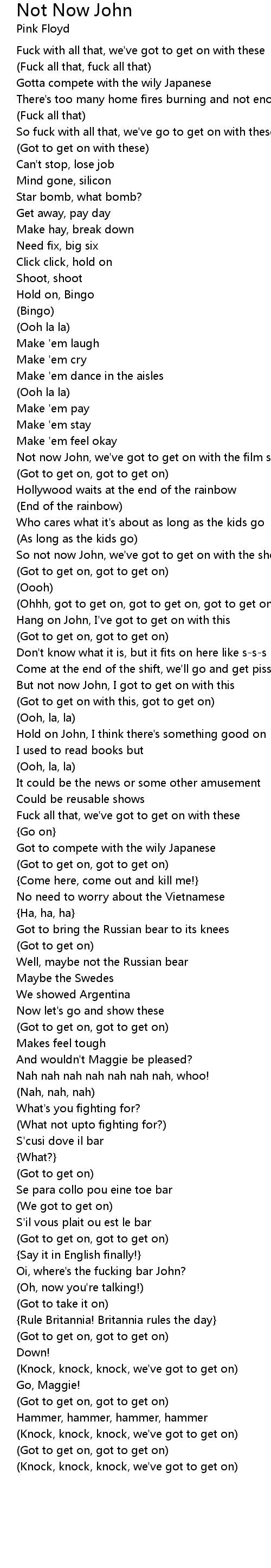 Not Now John 歌词