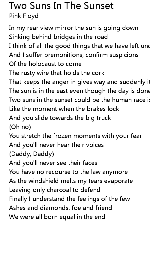 Two suns in the sunset could be the human race is run |