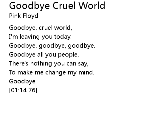 | [00:34.74] | Goodbye, cruel world, |