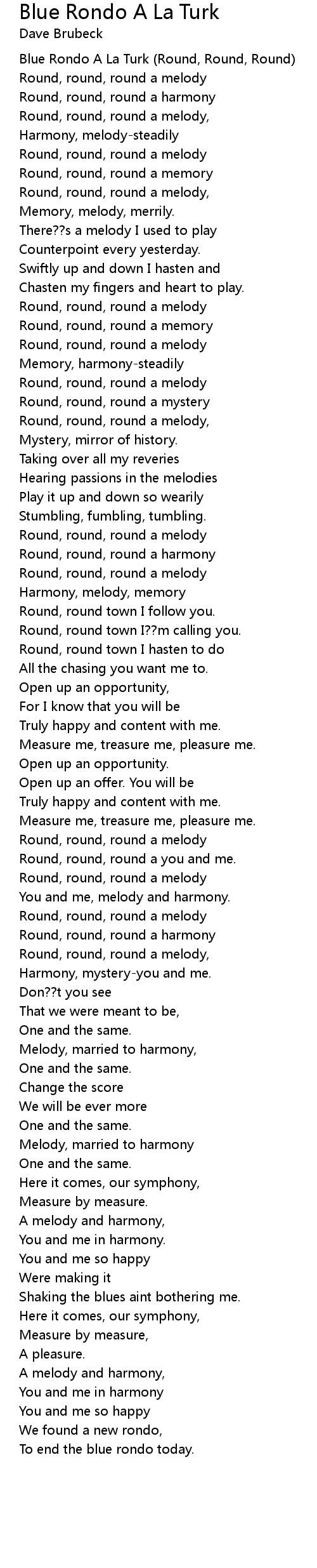Blue Rondo A La Turk (Round, Round, Round) |