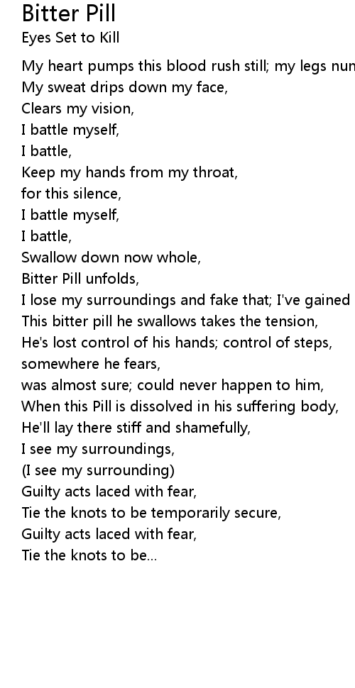 This bitter pill he swallows takes the tension, |