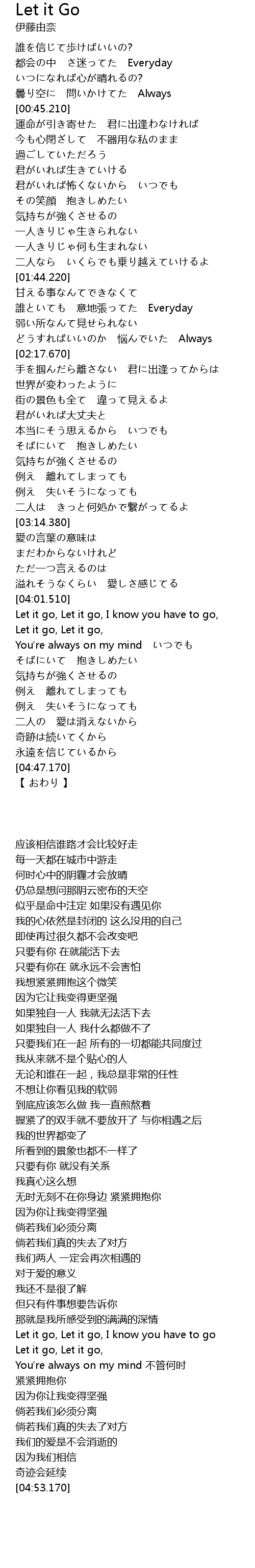 | [04:02.840] | Let it go, Let it go, I know you have to go, |