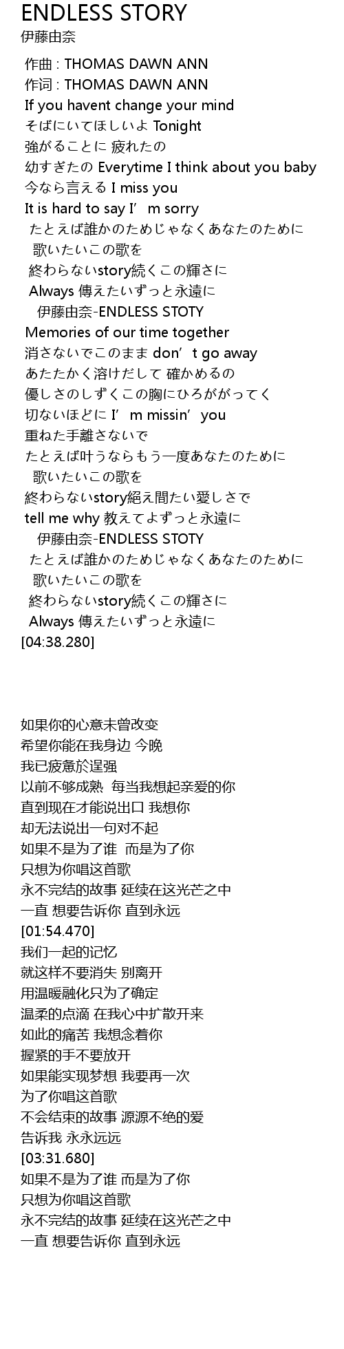 | [03:31.680] | 伊藤由奈-ENDLESS STOTY |