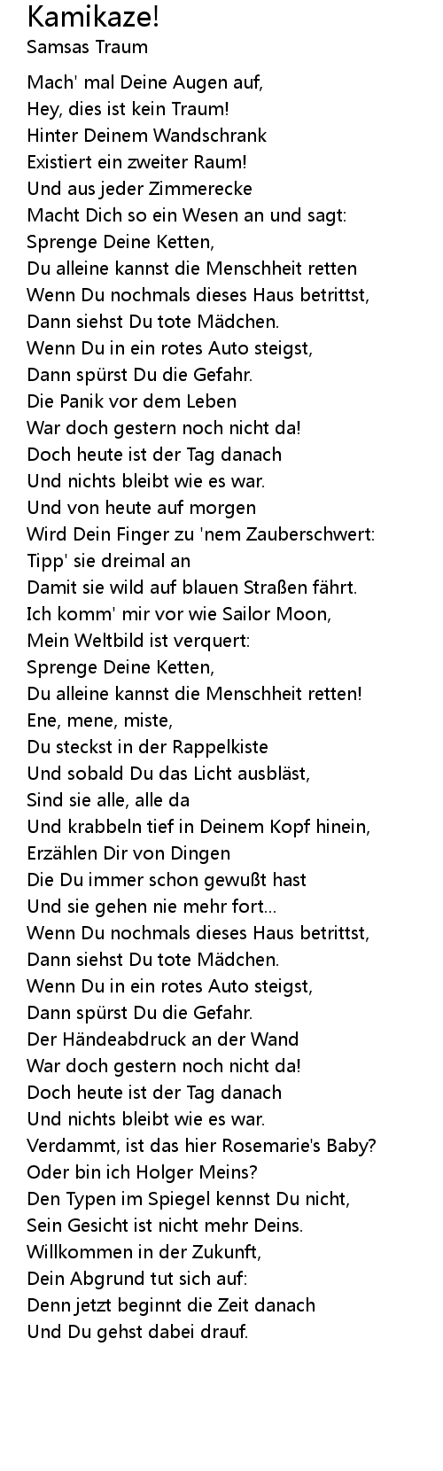 | Und krabbeln tief in Deinem Kopf hinein, | |