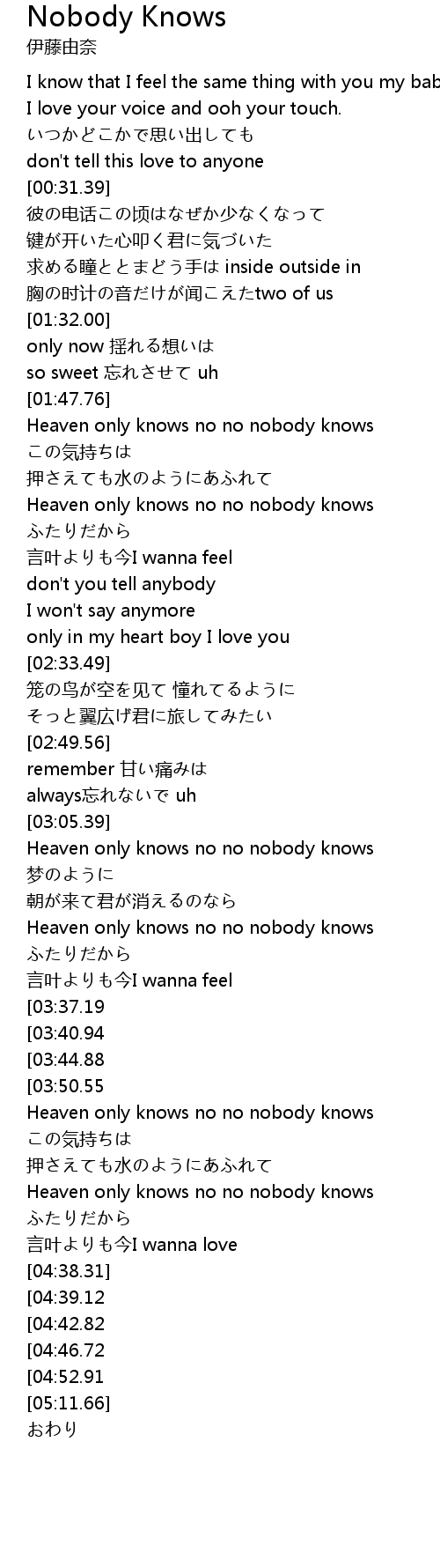 | [01:48.38] | Heaven only knows no no nobody knows |