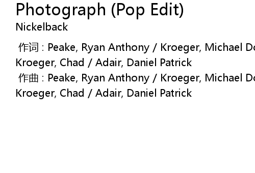 | [00:00.000] | 作曲 : Peake, Ryan Anthony / Kroeger, Michael Douglas Henry / Kroeger, Chad / Adair, Daniel Patrick |