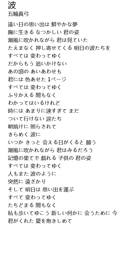 | たえまなく 押し寄せてくる 明日の波たちを | |