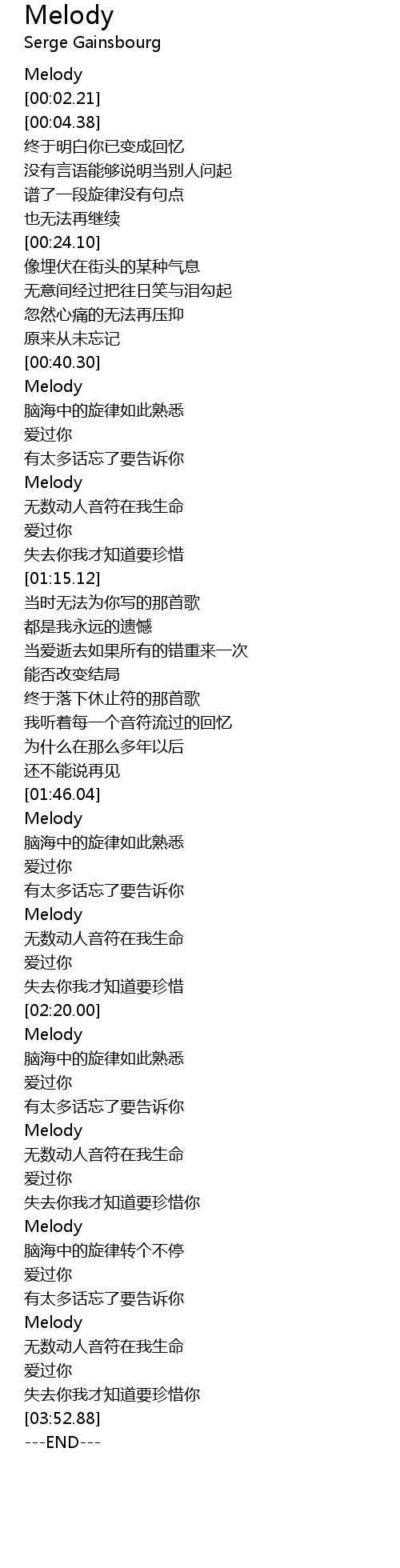 | [00:00.00] | Melody |