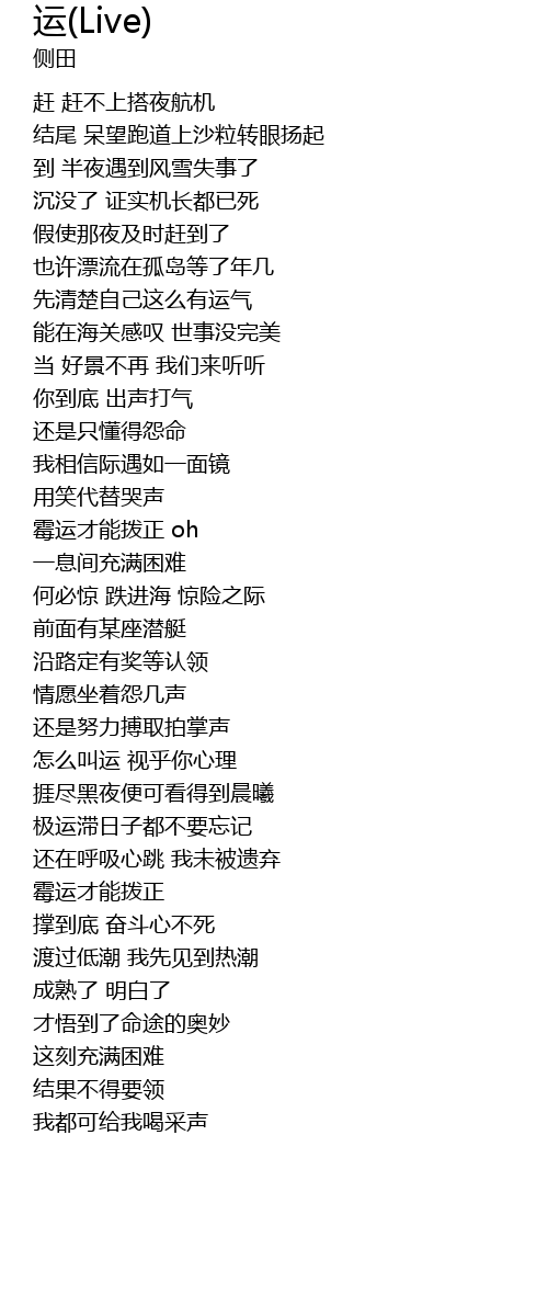 | 歌曲 | 运(Live) |