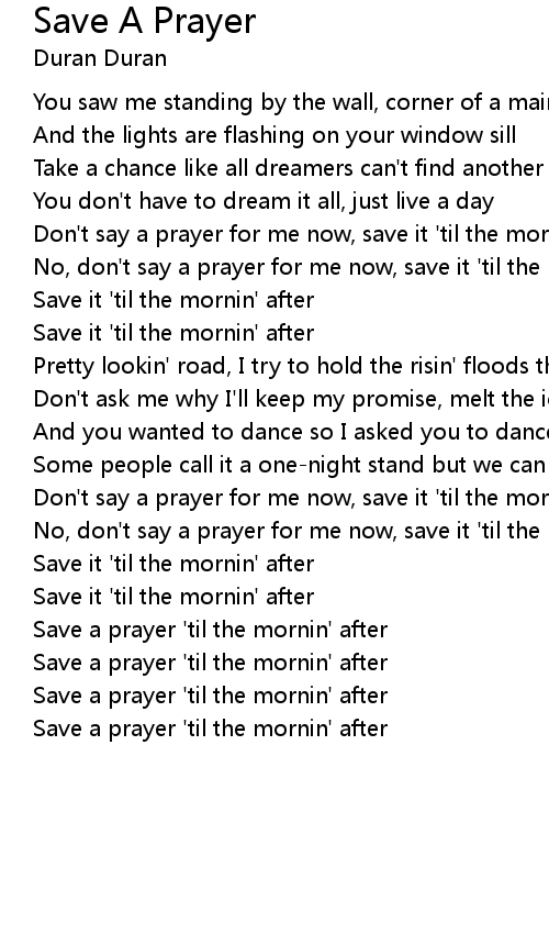 No, don't say a prayer for me now, save it 'til the mornin' after |