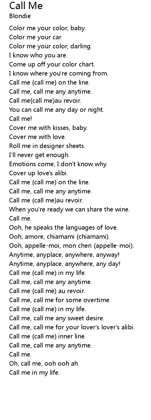 Ooh, appelle-moi, mon cheri (appelle-moi). |