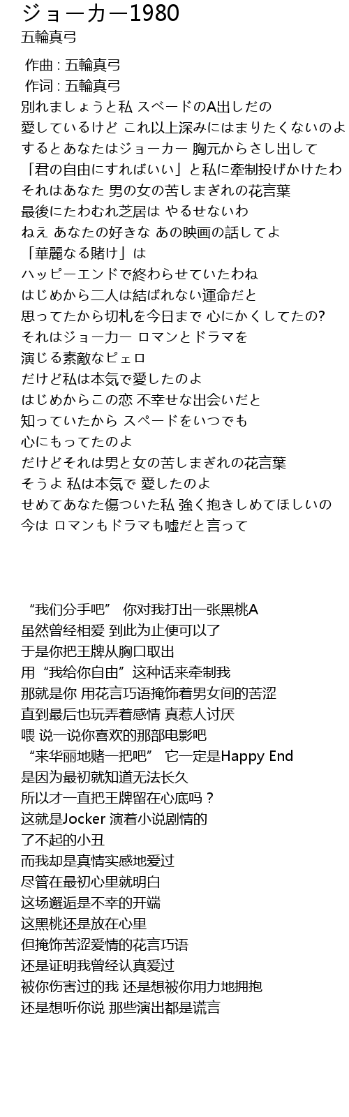 | [01:53.87] | 这就是Jocker 演着小说剧情的 |