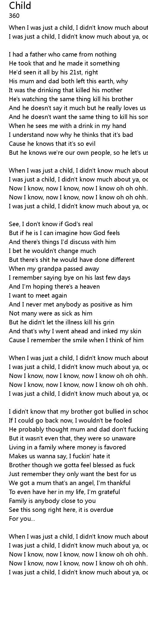 When I was just a child, I didn't know much about ya, ooh... ooh... |