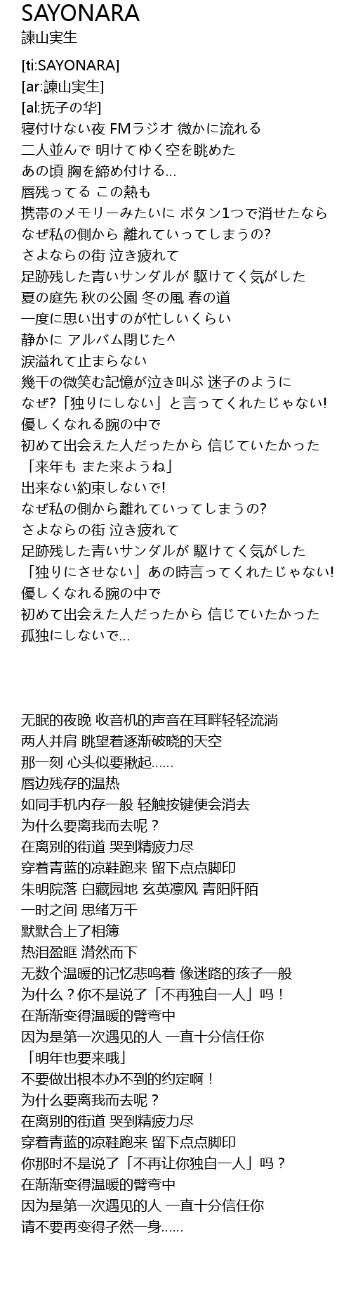 | [02:25.51] | なぜ?「独りにしない」と言ってくれたじゃない! |