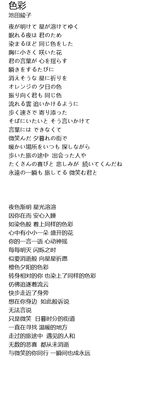 | [00:46.81] | 如染色般 着上同样的色彩 |