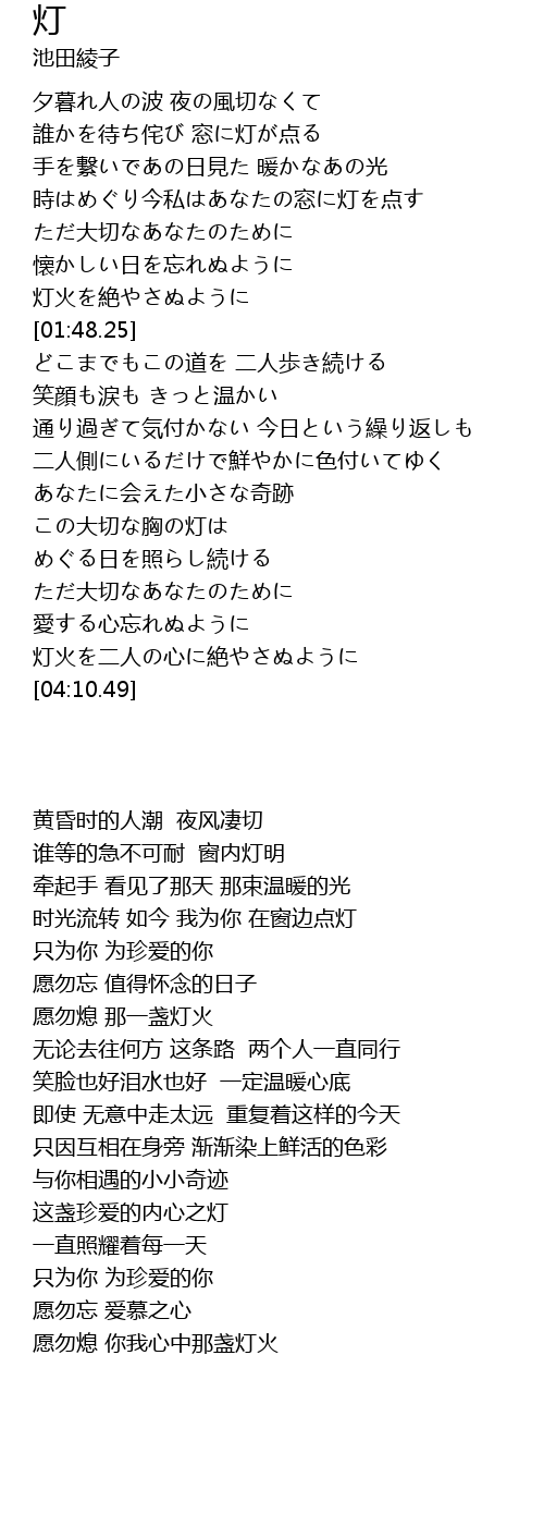 | [01:36.51] | 灯火を絶やさぬように |
