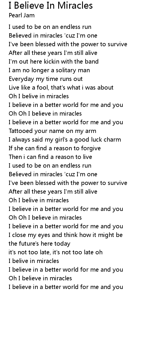 Oh I belive in miracles |