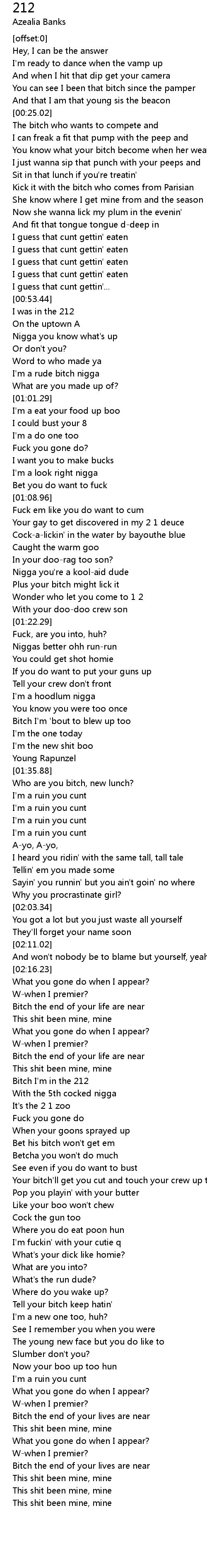 [00:44.17] I guess that cunt gettin' eaten