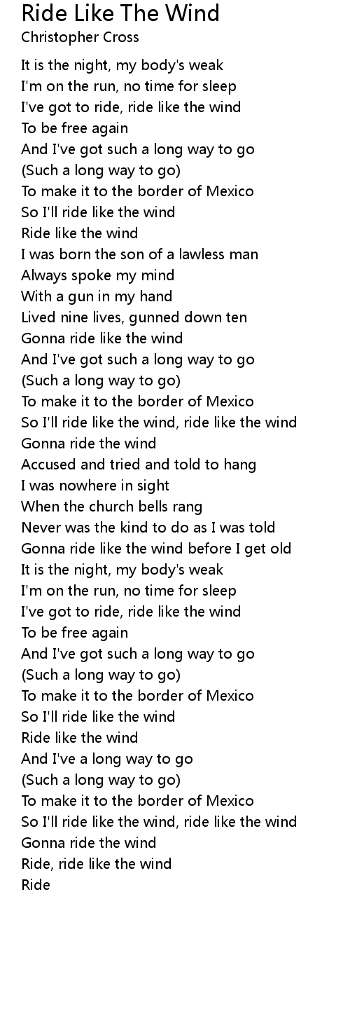 Ride Like The Wind 歌词