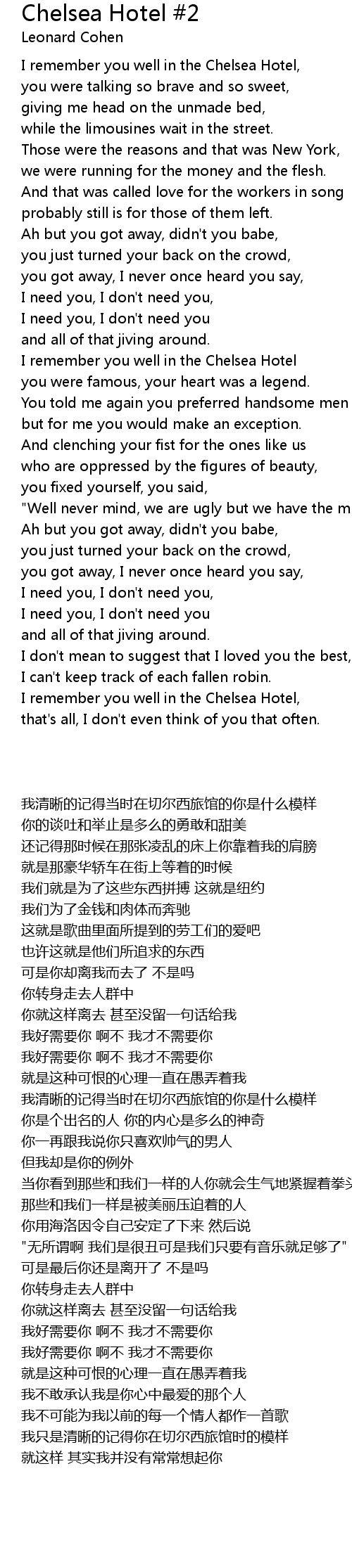 Chelsea Hotel #2 歌词