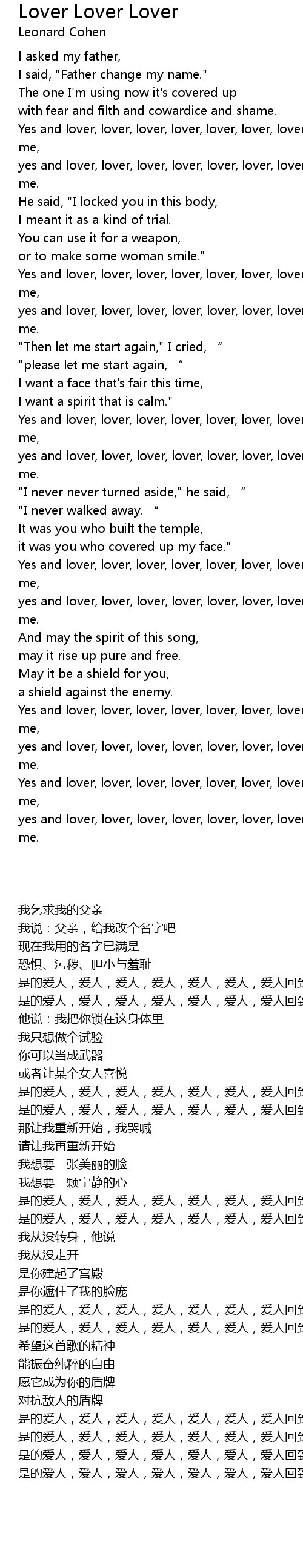 | [02:38.230] | Yes and lover, lover, lover, lover, lover, lover, lover come back to me, |