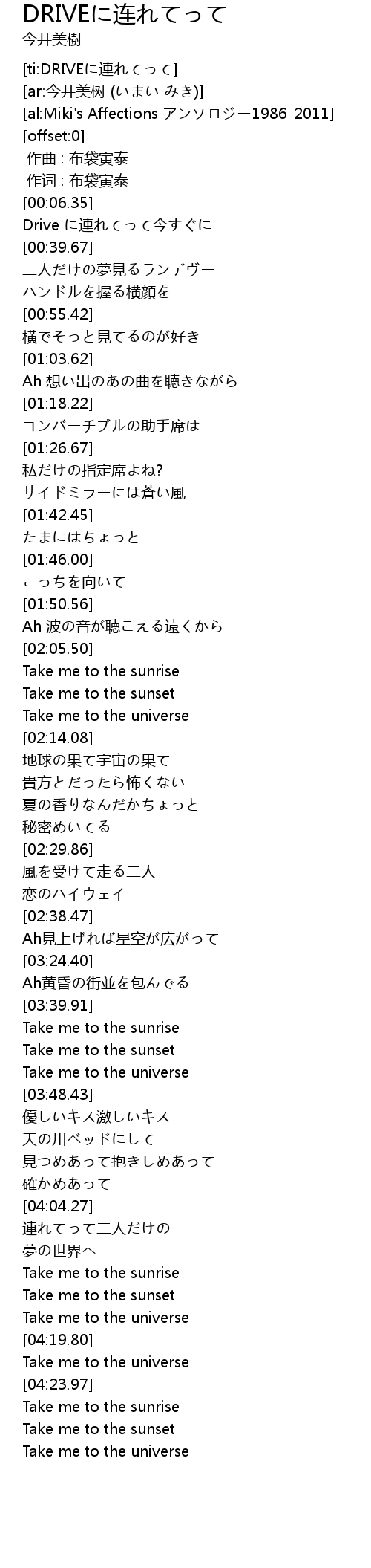 | [ti:DRIVEに連れてって] | |