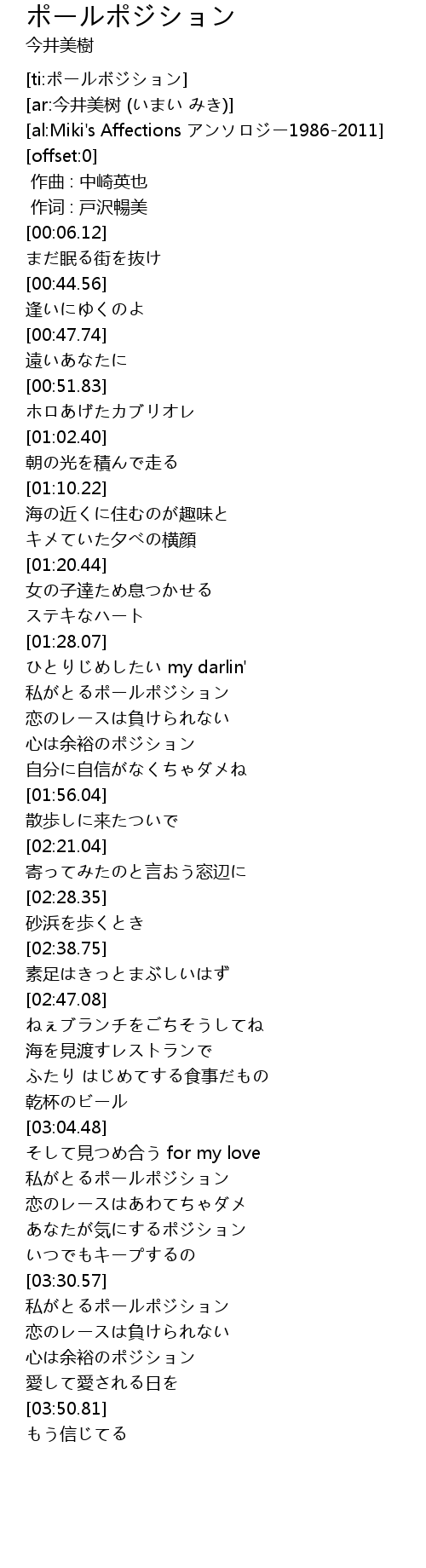| [03:15.36] | 恋のレースはあわてちゃダメ |