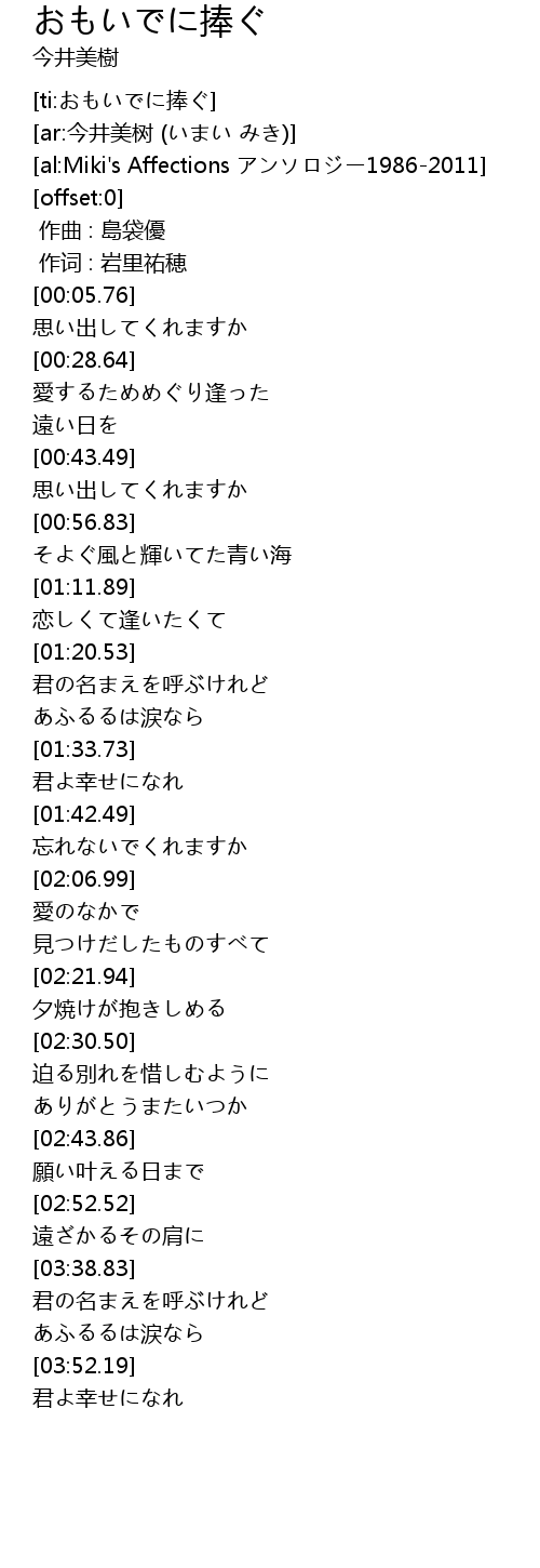| [00:59.55] | そよぐ風と輝いてた青い海 |