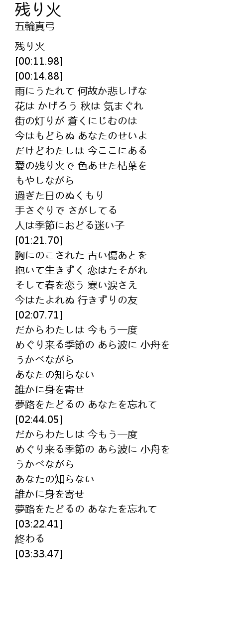 | [01:59.51] | 今はたよれぬ 行きずりの友 |