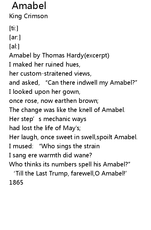| [00:05.64] | Amabel by Thomas Hardy excerpt |