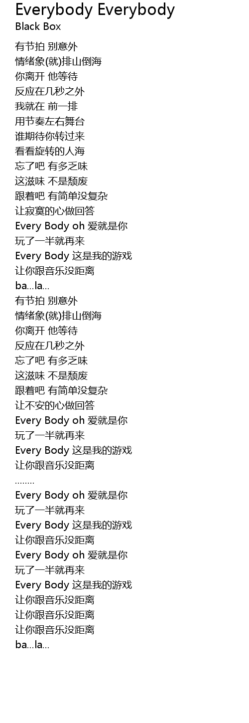 | [03:38.81] | Every Body oh ai jiu shi ni |