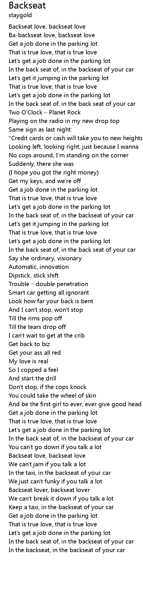 | [00:37.611] | In the back seat of, in the backseat of your car |