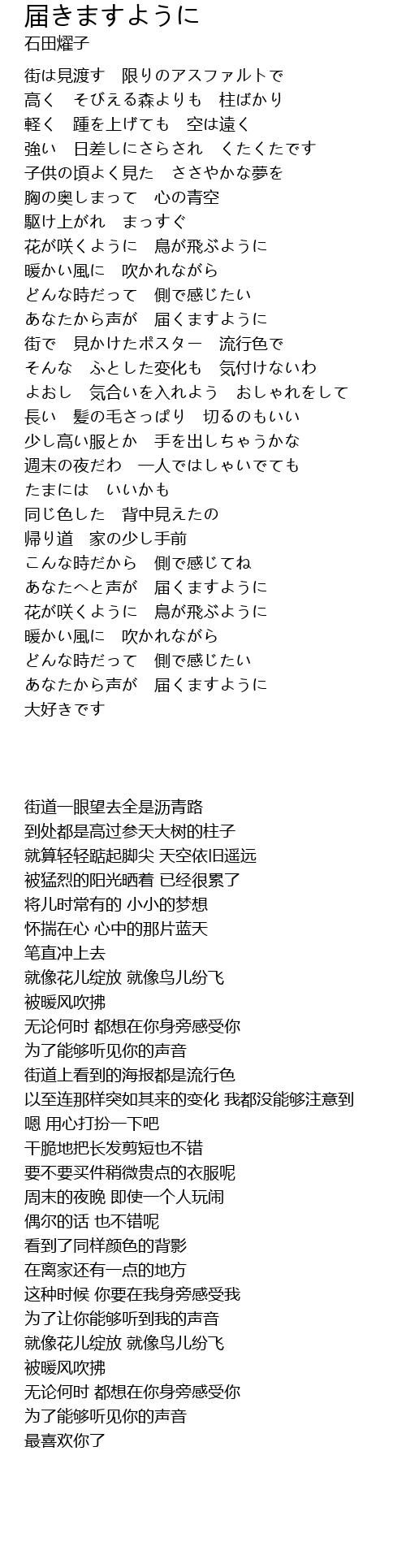 | [01:31.490] | あなたから声が 届くますように |