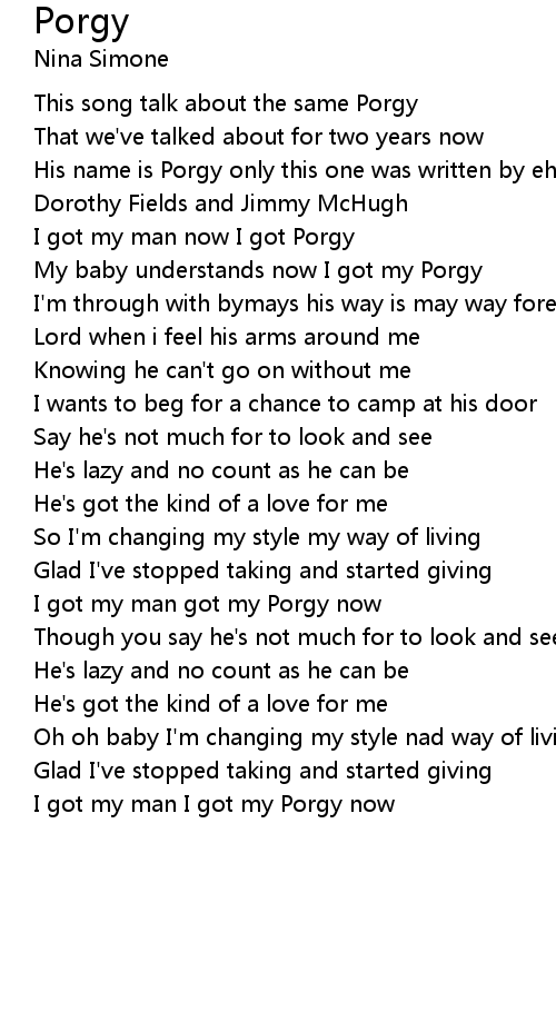 I got my man I got my Porgy now |