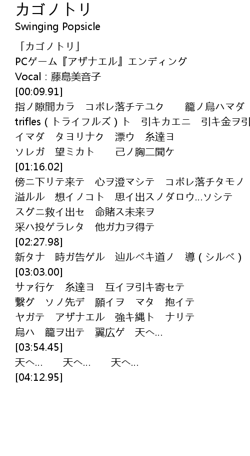 | [00:00.00] | 「カゴノトリ」 |