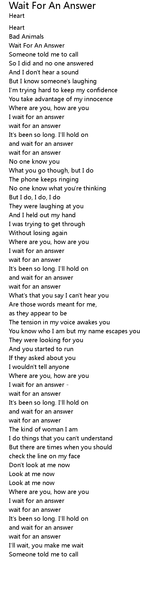 Wait For An Answer |